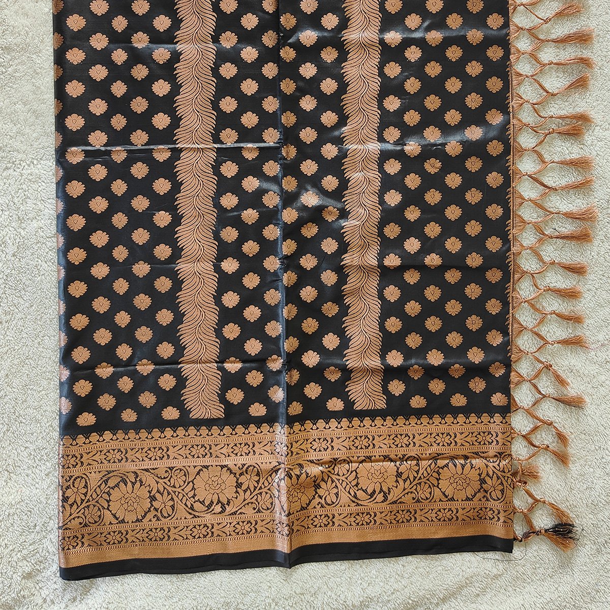 The weaving quality is exceptionally fine, featuring traditional craftsmanship combined with refined artistry. The fabric holds its shape beautifully, giving you a polished, elegant silhouette. Its intricate motifs, detailed patterns, and luxurious sheen make it the perfect blend of heritage and modern sophistication.